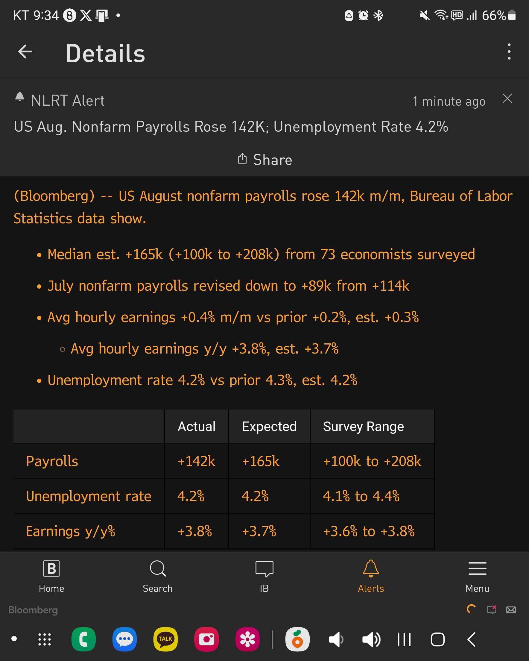 이상 8월 미국 비농업 실업률 속보였습니다.