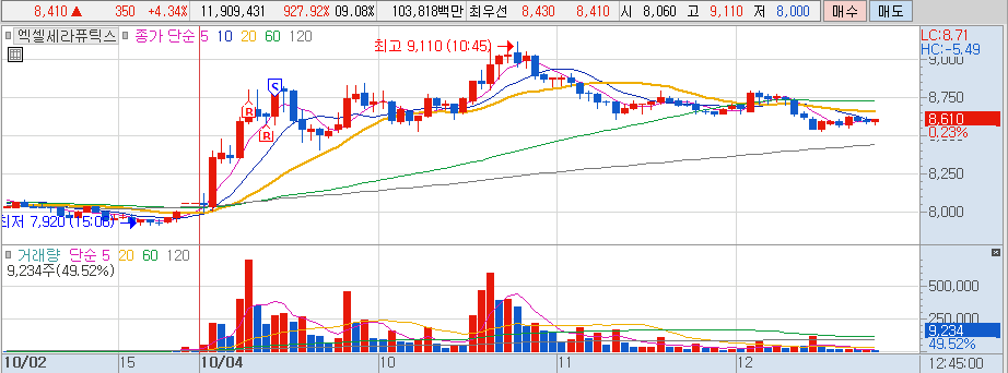 엑셀세라퓨틱스 : 뉴스 매매, 상승폭 확대, 바이오 테마, 손익 +1.09%