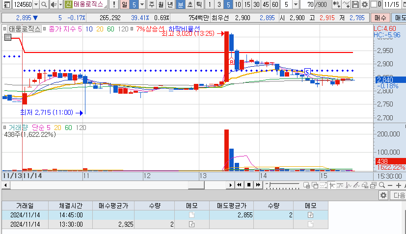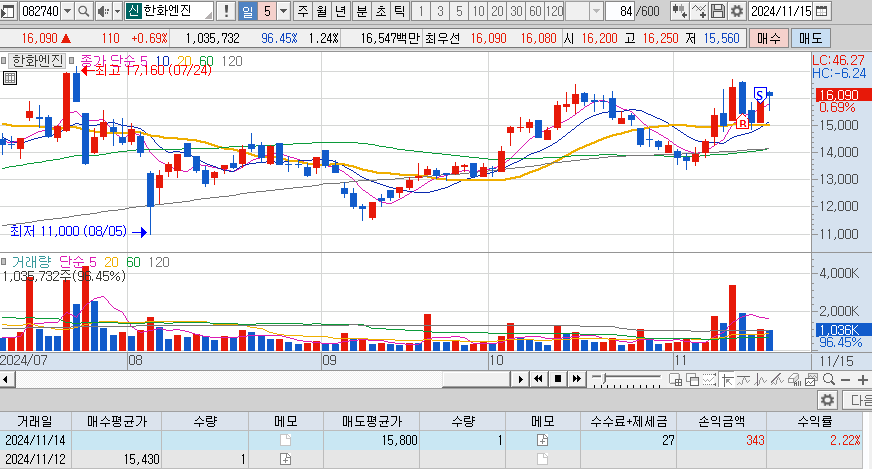 나만의 전략과 전술을 찾고 익히기 위해 소액으로 한 주 동안 진행한 단타, 종가 매매 및 자동매매 실전 훈련 트레이딩 복기주간 일지.(기간 : 2024년 11월 11일 ~11월 15일)