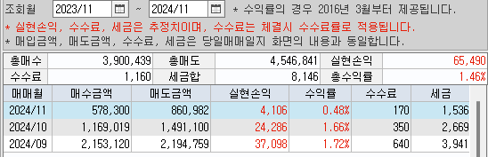 - 개요 : 9월부터 테스트 진행하다 11월 14일 조건식 전환하여 운영시작. 11월 기존 포지션 강제 청산(청산 시점 손실 종목 보유상태)으로 11월은 수익 감소 발생.
