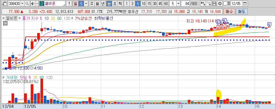 - 반성 : 마지막 진입은 적정했나? 단순히 거래량만 유입된다고 진입하는 게 맞는가? 손절 타이밍은 적절했는가? 시나리오에 반영 못함. 상따 시도 테스트 종목이나 매매 종류 무관하게 설정 필수.