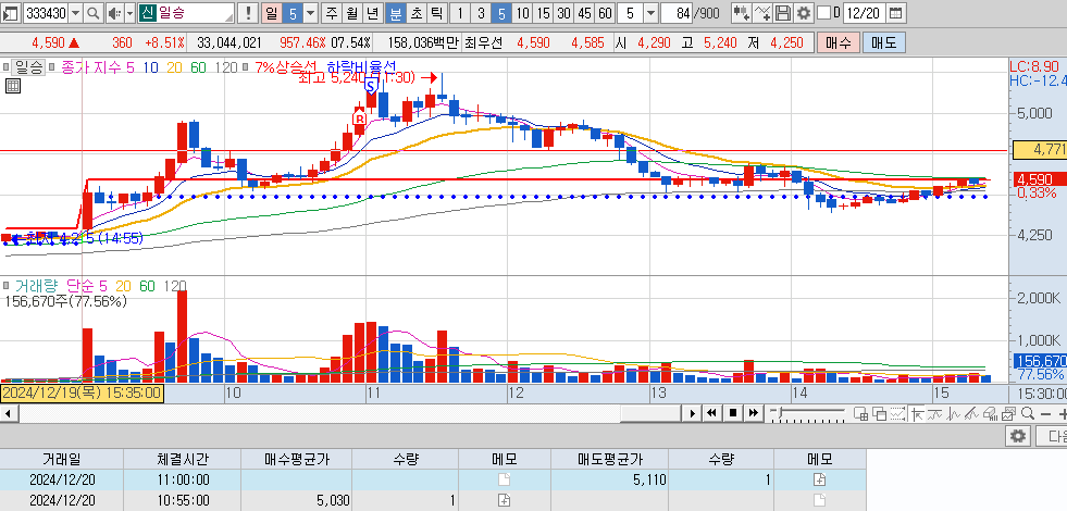 오늘 본전 같은 수익 발생. 2 종목 거래했는데... 둘 다 돌파 매매.