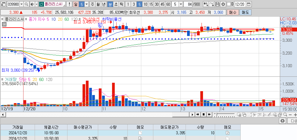 - 분석 : 수익, 상승후 눌림목 매매, 이것도 아주 적게 먹고 나옴. 길게 가지 않고 바로 정리 전략.