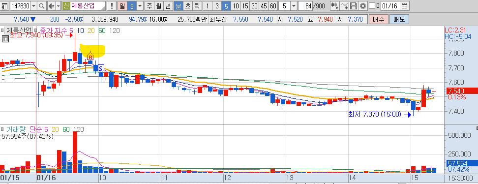 - 분석 : -0.53% 손실, 추세가 안 나와 매도하니 바로 오르네. 어렵다. ㅎㅎㅎ